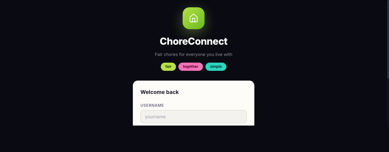 Create a household, invite members by code, assign chores with due dates, and track who is pulling their weight.