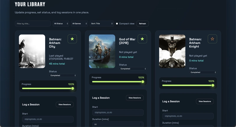 A web application for logging and tracking gameplay, featuring game discovery, friend connections, and personalized top five lists. Built with AI-assisted development and deployed on Open Source Cloud.
